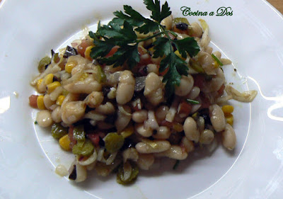 Hacemos esta ensalada muchas veces, sobretodo en verano y siempre si vamos a la piscina. una buena opción para acompañar los filetes empanados, una tortilla o croquetas.