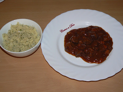 Yo los hago acompañados de patatas cocidas, pero este plato no las lleva.